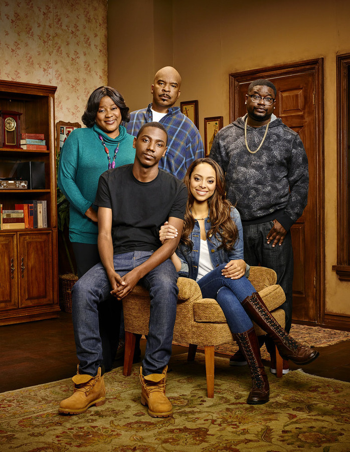 Loretta Devine as Cynthia Carmichael, Jerrod Carmichael as Himself, David Alan Grier as Joe Carmichael, Amber Stevens West as Maxine, Lil Rey Howery as Bobby Carmichael in THE CARMICHAEL SHOW | - Season 1 | ©2015 NBCUniversal/Matthias Clamer