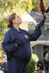 Brennan starts seriously reevaluating her life situation. Angela (Michaela Conlin) and Hodges’ announcement that they’re moving to France makes Brennan reflect that perhaps there’s more to life than solving murders, and maybe husband Booth could do something that gets him out of the line of fire as well. By the episode’s end, both of them are saying goodbye to their respective institutions, to the tearful farewells of lab boss Cam (Tamara Taylor) at Brennan’s end and both partner agent Aubrey (John Boyd) and prosecutor Caroline Julian (Patricia Belcher) at Booth’s.