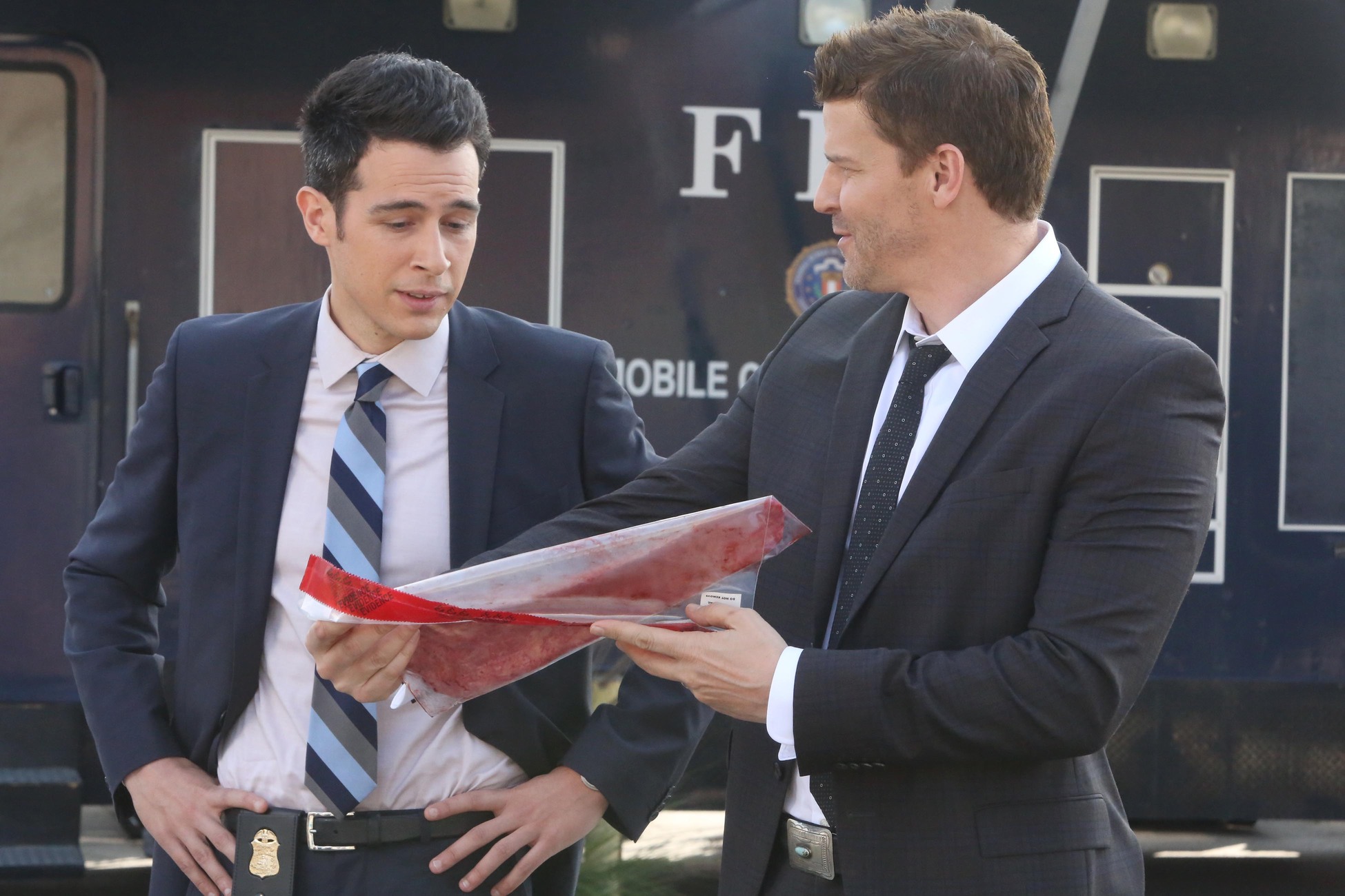 David Boreanaz as Booth and John Boyd as Aubrey in BONES "The Verdict in the Victims" | © 2015 Patrick McElhenney/FOX