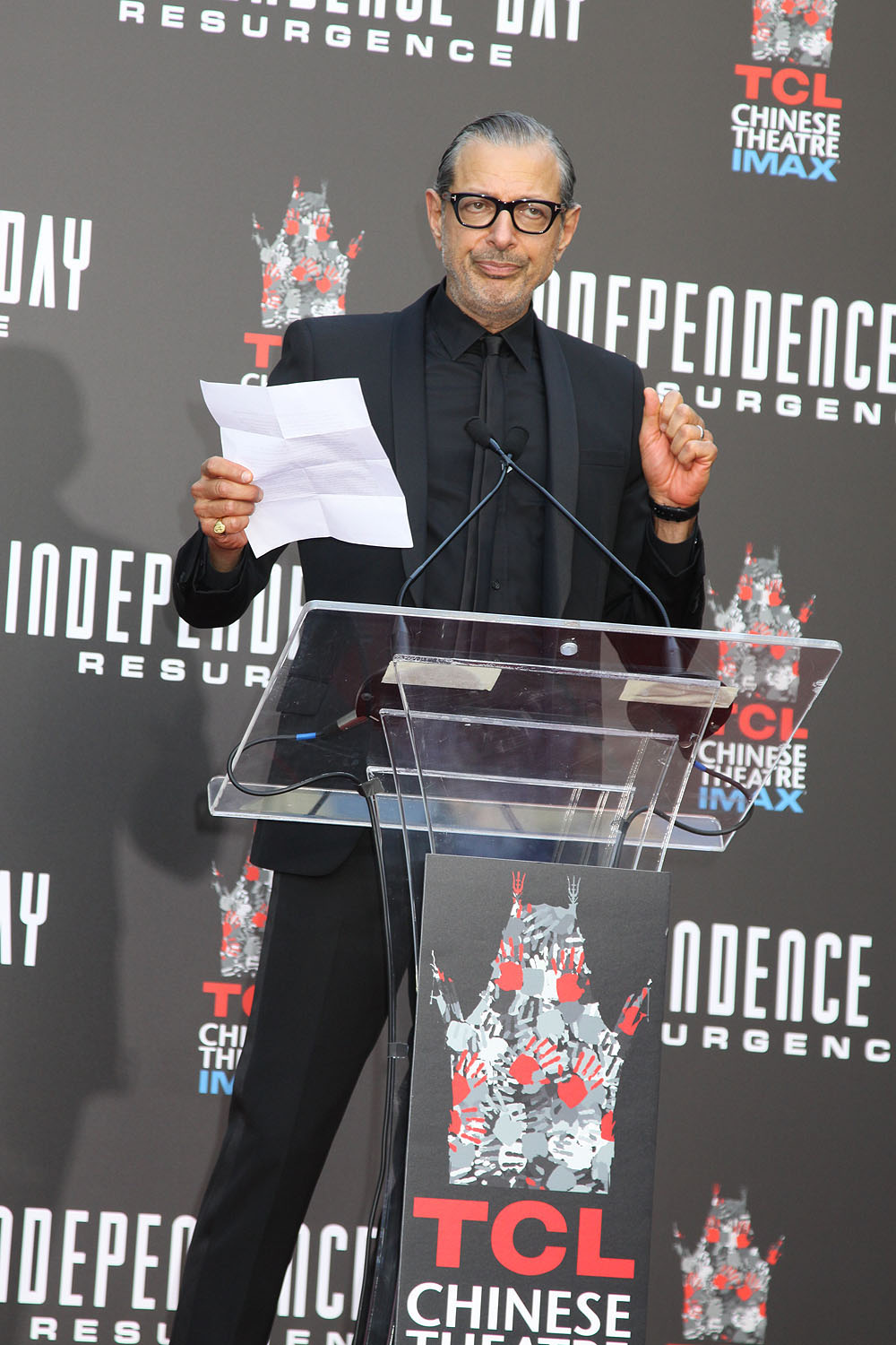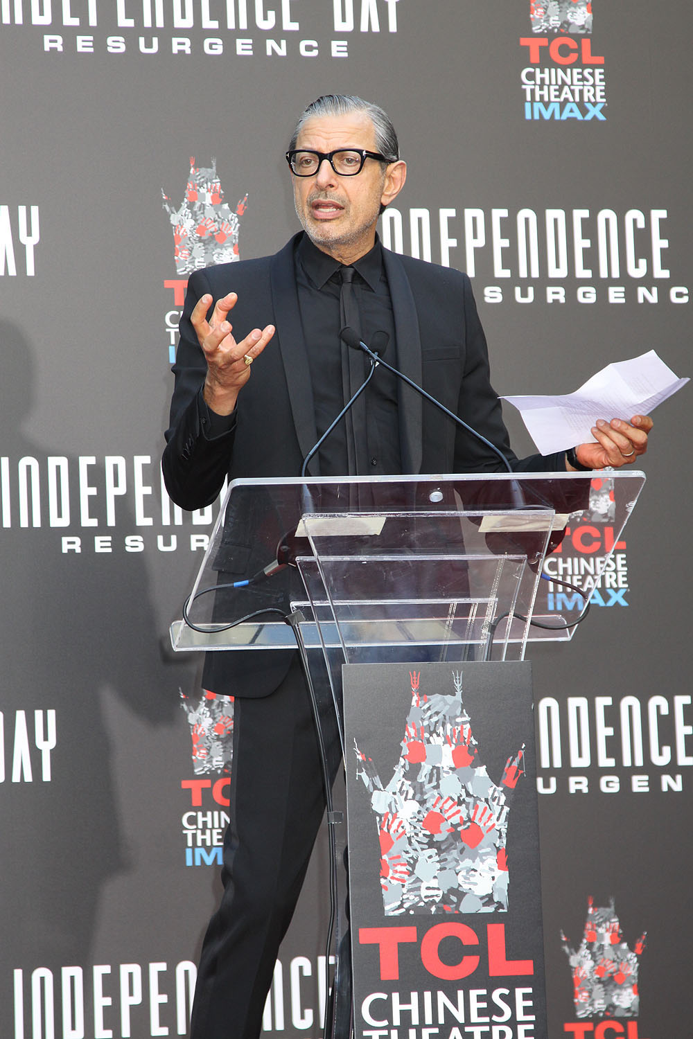 - Jeff Goldblum at the Roland Emmerich Hand and Footprint Ceremony for FOX’s INDEPENDENCE DAY RESURGENCE, TCL Chinese Theater, June 20, 2016. Photo Credit Sue Schneider_MGP Agency