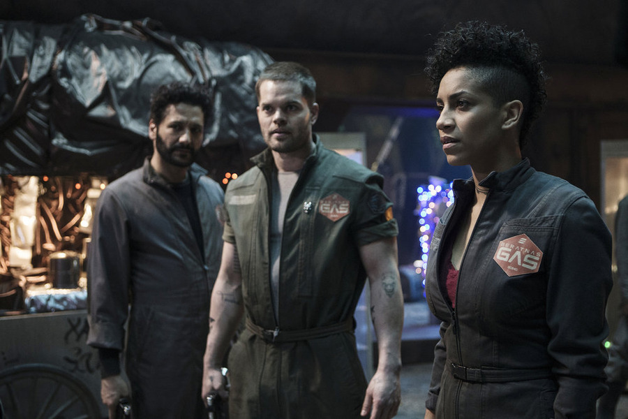 Cas Anvar as Alex Kamal, Wes Chatham as Amos, Dominique Tipper as Naomi Nagata in THE EXPANSE | © 2016 Rafy/Syfy