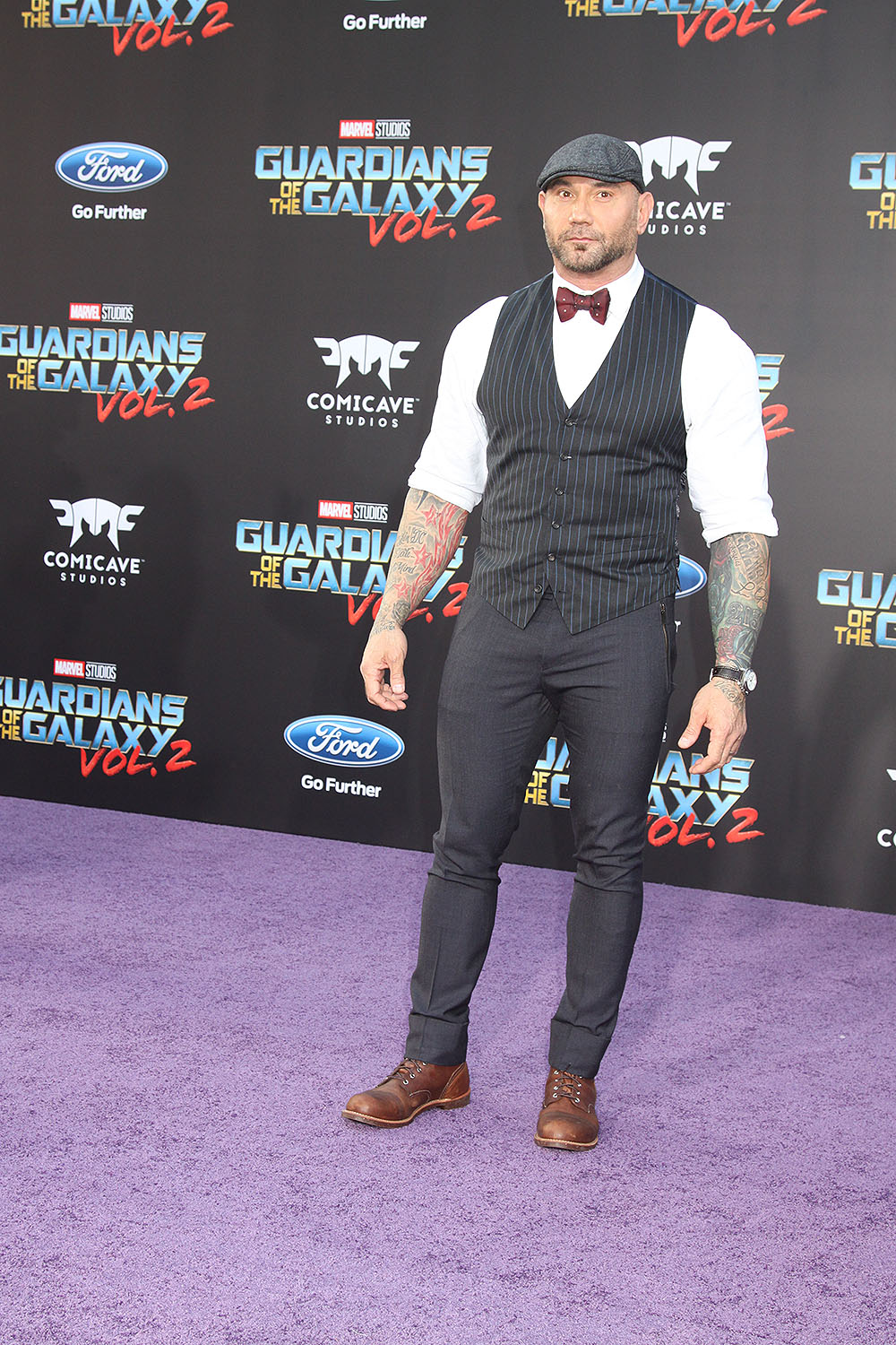 - Dave Bautista at the World Premiere of Marvel Studios’ GUARDIANS of the GALAXY Vol 2, April 19, 2017 at the Dolby Theatre, Hollywood, California. Photo Credit Sue Schneider_MGP Agency