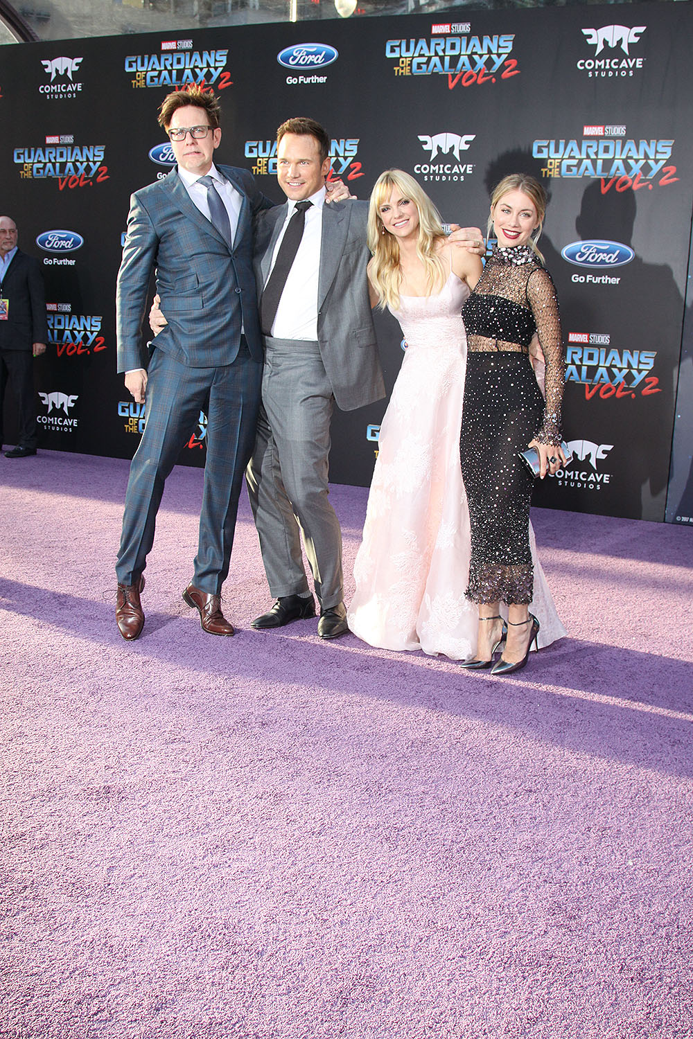 - L-R: James Gunn, Chris Pratt, Anna Faris and Jennifer Holland at the World Premiere of Marvel Studios’ GUARDIANS of the GALAXY Vol 2, April 19, 2017 at the Dolby Theatre, Hollywood, California. Photo Credit Sue Schneider_MGP Agency