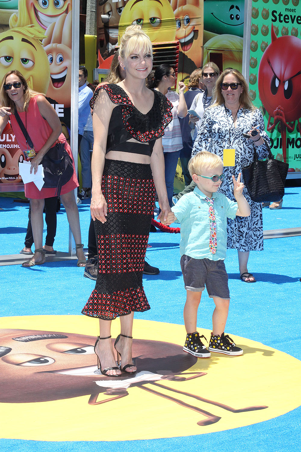 - Anna Faris and son at the World Premiere of THE EMOJI MOVIE, July 23, 2017 at the Regency Village Theatre, Westwood, California. Photo Credit Sue Schneider_MGP Agency