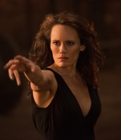 Amara (Emily Swallow) is torturing Castiel/Lucifer (Misha Collins), in the hope that he’ll beg her brother God for help. Lucifer refuses, and points out that Amara can’t create, only destroy.