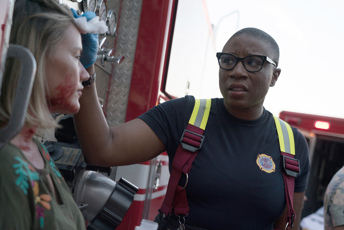 “The first time I heard that story,” says Peter Krause, who plays Hen’s firefighting boss Bobby Nash, “I was incredibly grateful that Aisha is with us. She’s a tremendous person, and you realize how fragile life is as you move through the day.”