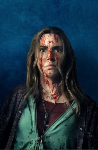 CARVER-O’NEILL: It was fun. [laughs] I mean, it’s a weird experience. I don’t think anyone can really prepare themselves for it. I think everyone should experience it because it’s fun, and also shocking. When you get hit with a cannon of blood, there’s no preparing for it. You don’t know what your face is going to do, or your body, and you have to pretend it’s not coming, even though you know it is. And so it’s always a shock when it happens, which I think is a lot of fun. And it’s very much an adrenaline rush, knowing that you can only do it the one time, because we don’t have the time to clean up and then reset and start again, because that stuff gets everywhere. It’s all over the set, it’s all over you, it’s all over your clothing – you can’t escape the blood.