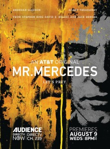 In Season 1 of AT&T Audience Network/DirecTV’s MR. MERCEDES, adapted for television by David E. Kelley from the Stephen King novel of the same name, innocent-looking young man Brady Hartsfield (Harry Treadaway) commits mass murder with the title vehicle. Retired Chicago police detective Bill Hodges (Brendan Gleeson) and his friend Holly Gibney (Justine Lupe) track Brady down while he’s committing more homicides. Holly manages to inflict near-fatal brain damage on Brady, thwarting his plan to blow up a full auditorium.