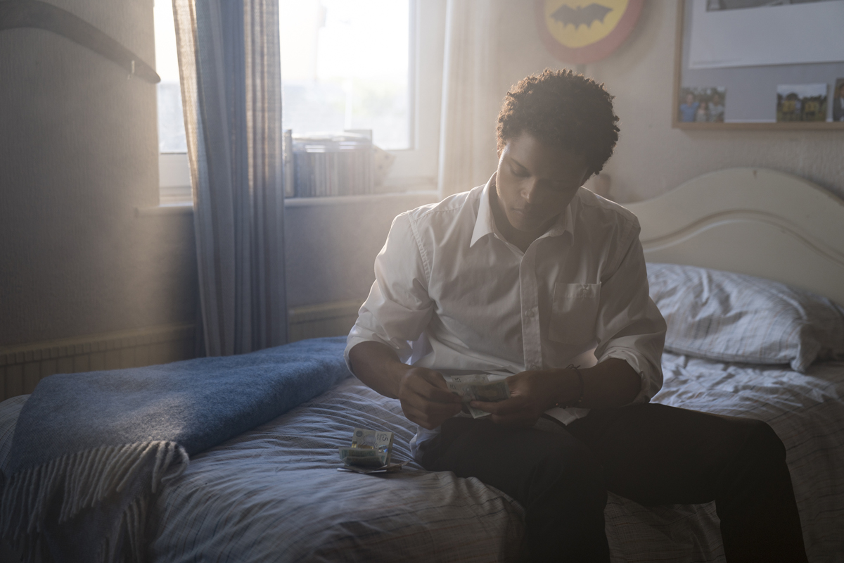 ASCOTT: This thing with Harry is that, Harry’s the kind of kid to make the most noise in a room, but still the most lonely. And June is the character to see that vulnerability inside of him. For Harry, he can’t escape from being a chief carer [caregiver] with his dad, and his mum is constantly working, so he doesn’t have much of a family support. So someone like June loves him for who he is. And I think in that, when we’re searching for partners, we’re trying to find people who are compatible with us, who complete us. And I feel like, cheesy as it may sound, June completes Harry. And I feel like that’s why.