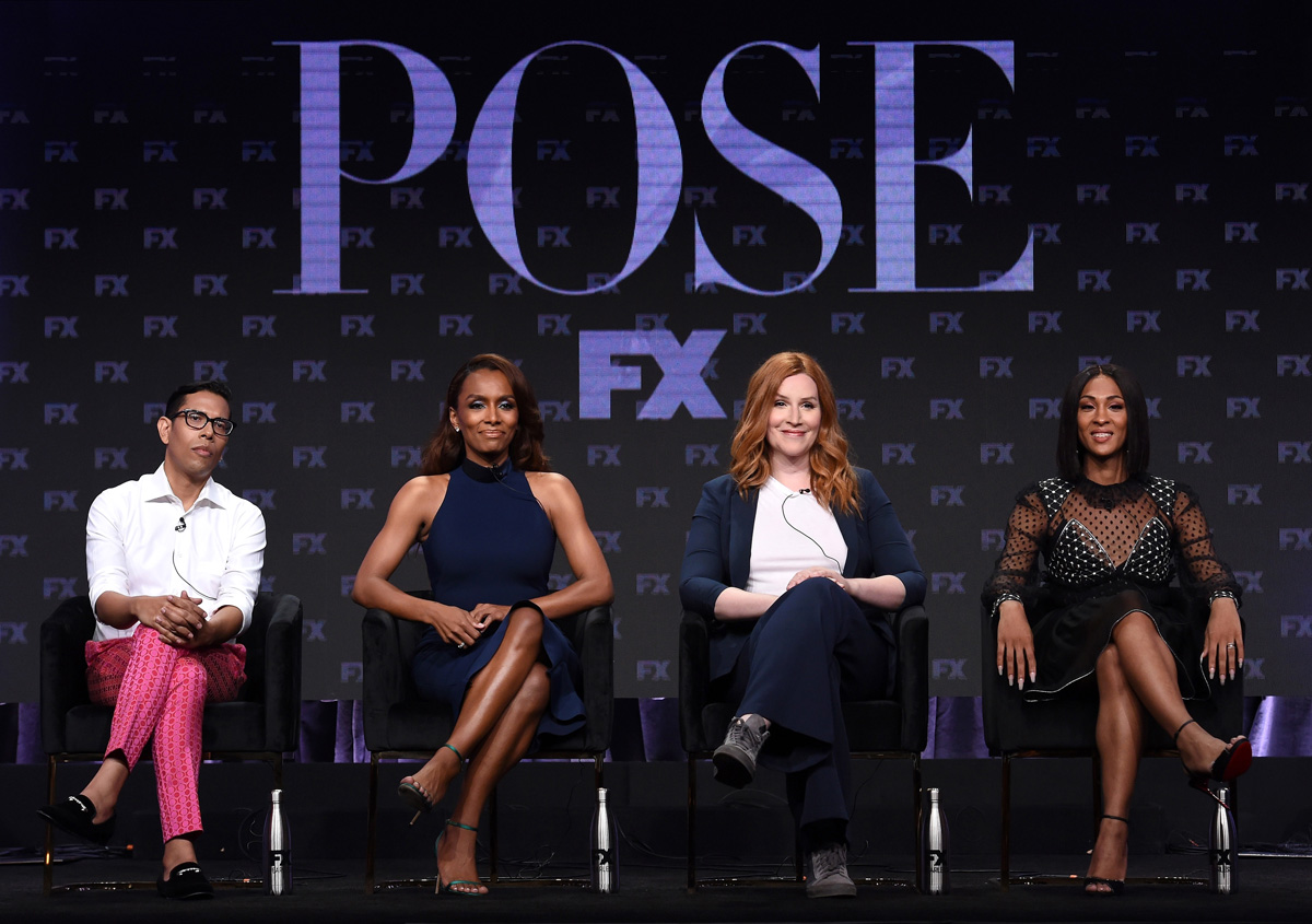 Co-Creator/Executive Producer/Writer/Director Steven Canals, Co-Executive Producer/Writer/Director Janet Mock, Supervising Producer/Writer Our Lady J, and Cast Member Mj Rodriguez onstage during the POSE panel at the FX Networks portion of the Summer 2019 TCA Press Tour at the Beverly Hilton on August 6, 2019 in Los Angeles, California. | ©2019 FX/Frank Micelotta/PictureGroup)