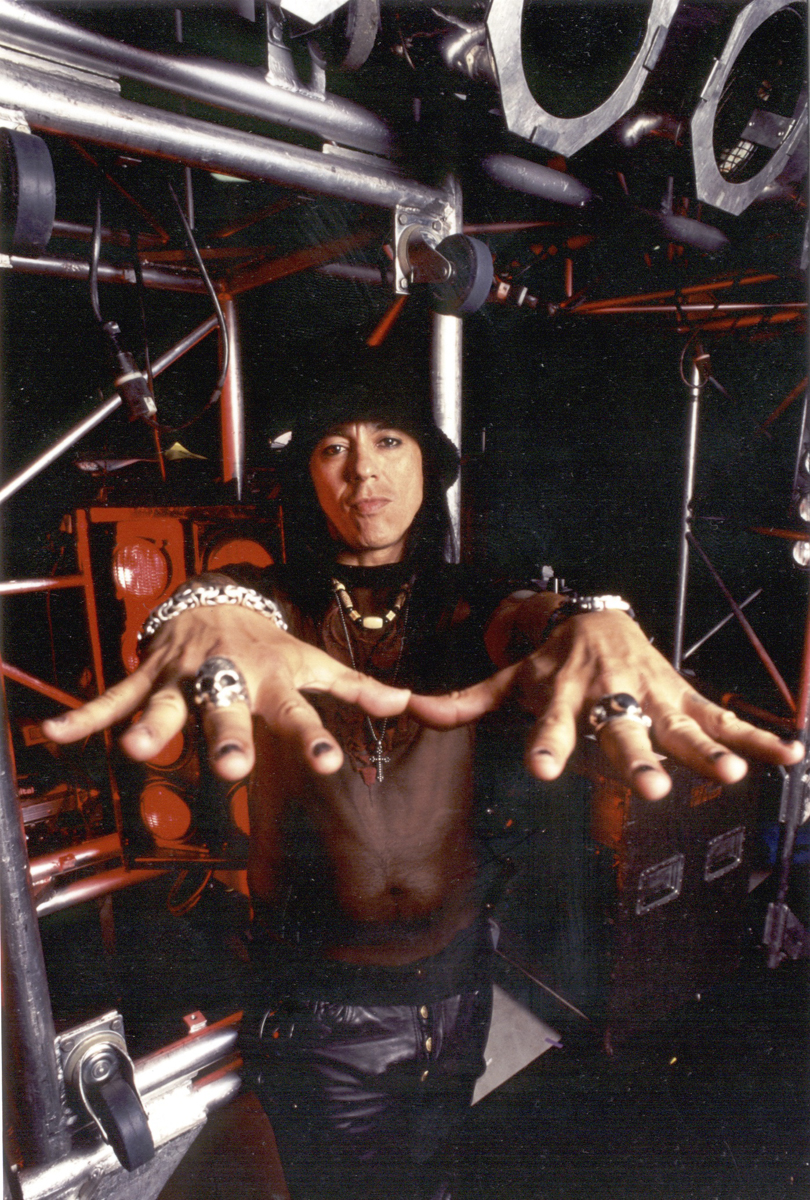 STEVIE SALAS: It was kind of through the music scene in a roundabout way, because the Black Eyed Peas – I am older than Tab, and so I started about ten years before him, and I have a recording contract. A young kid used to come and stand right in front of me, right before I blew up, but I was already signed, I played clubs still, and he used to come and watch me, every time I played. And I got to know him, just this nice kid. And it turns out, years later, he became the guitar player for the Black Eyed Peas. So he would write me and tell me, “I’m in this band.” So I’d pop into little clubs and see him play, just say hi to him, check on him. And then I went to put this exhibit together for the Smithsonian on the subject of RUMBLE. It was called UP WHERE WE BELONG: NATIVES IN POPULAR CULTURE. And I asked [another musician], “Is Taboo Native American?” I’d been hearing he was. You used to hear all kinds of things about Taboo.