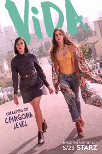 Starz’s idiosyncratic comedy/drama VIDA begins its second season on Sunday, May 26. Created by Tanya Saracho and shot on location in East Los Angeles, VIDA deals with previously estranged sisters Emma (Mishel Prada) and Lyn (Melissa Barrera), brought together by the death of their mother Vidalia. In Season 1, Emma and Lyn grappled with their inheritance of Vida’s lesbian bar, its attached low-income apartments and its gigantic mortgage. Emma also coped with finding out that Vida was married to a woman, Eddy (Ser Anzoategui), a particular shock as Emma had been sent away in adolescence when Vida learned her eldest daughter was a lesbian. Lyn, meanwhile, briefly rekindled a romance with old flame Johnny (Carlos Miranda), even though Johnny is now married and expecting a baby with wife Karla (Erica Lupo).