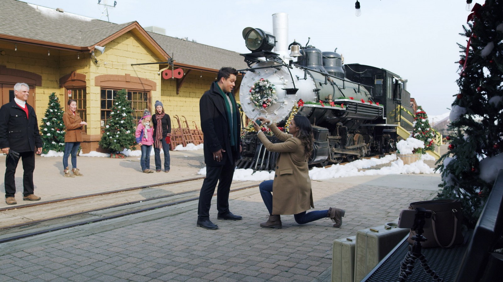 In the Christmas movie BEAUS OF HOLLY, premiering tonight on Ion Television, Holly (Jennifer Freeman) has a holiday surprise for her beau Phil, played by Michael Copon. In a quaint tourist town (actually, Idaho Springs, Colorado), Holly, per what she thinks is part of their five-year plan, proposes marriage. Trouble is, Phil thought Holly was going to break up with him, and has pre-cushioned the blow by arranging to spend the weekend with his ex, Tiffany (Nikki Leigh). Will Holly leave the door open for Phil’s return, or will she fall for carriage driver Jake (Johnny Pacar)?