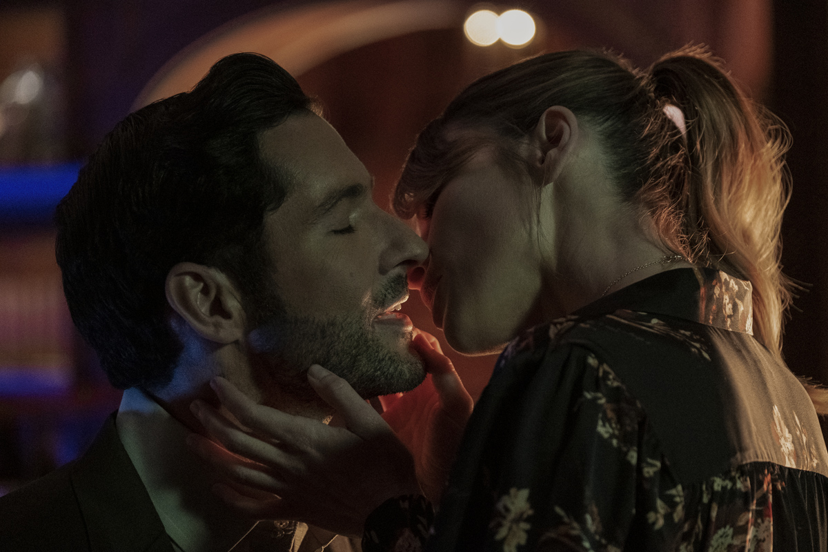 Lauren German as Chloe Decker and Tom Ellis as Lucifer in LUCIFER – Season 5 – “Really Sad Devil Guy” |©2020 Netflix/John P. Fleenor