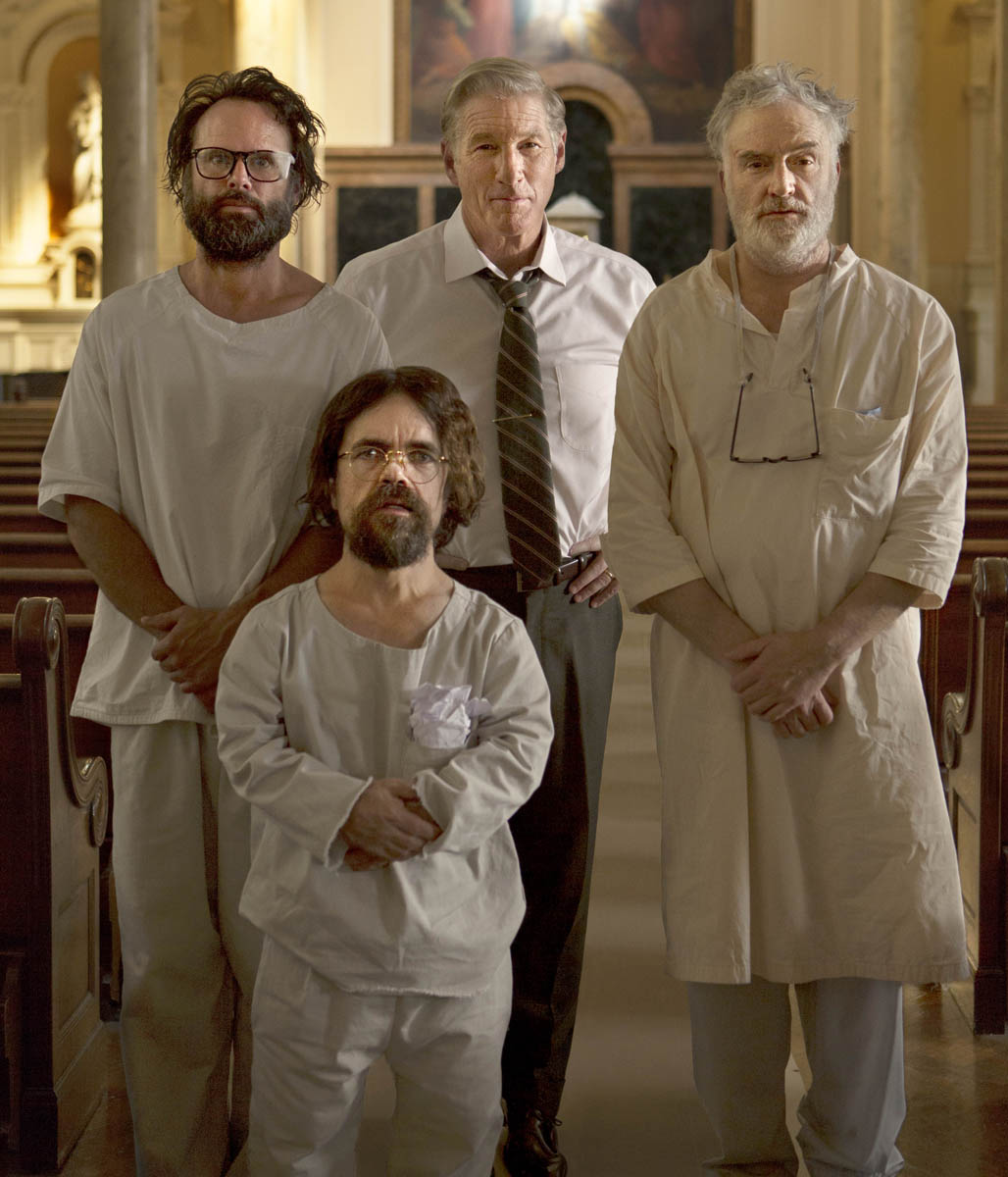 Newly installed at the Ypsilanti State Hospital, Alan immediately clashes with his peers over their use of shock treatment and over-medication on the patients. Alan is bemused to find that he’s got not one but two inmates who believe they are Jesus Christ. Joseph (Peter Dinklage) says he is Jesus of Nazareth. He is erudite, well-spoken and opera-loving, though he is self-destructive and dangerous when provoked. Clyde (Bradley Whitford) also thinks he is Jesus, “but not of Nazareth.” He detects stench everywhere and showers way too often.