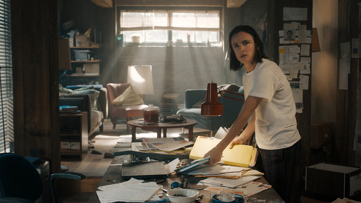 JULIETTE LEWIS: Right? That’s what I would say. And it’s perfect for a person who doesn’t want to socialize or really interact with others. And it’s kind of funny for her, because she’s not a people person, and she gets exasperated. So we touch on that a little bit. And then her true passion is what we see. They do a great reveal of seeing what she’s looking at, which is all these unsolved cases and pictures and clues. And that’s really the inside of her mind.