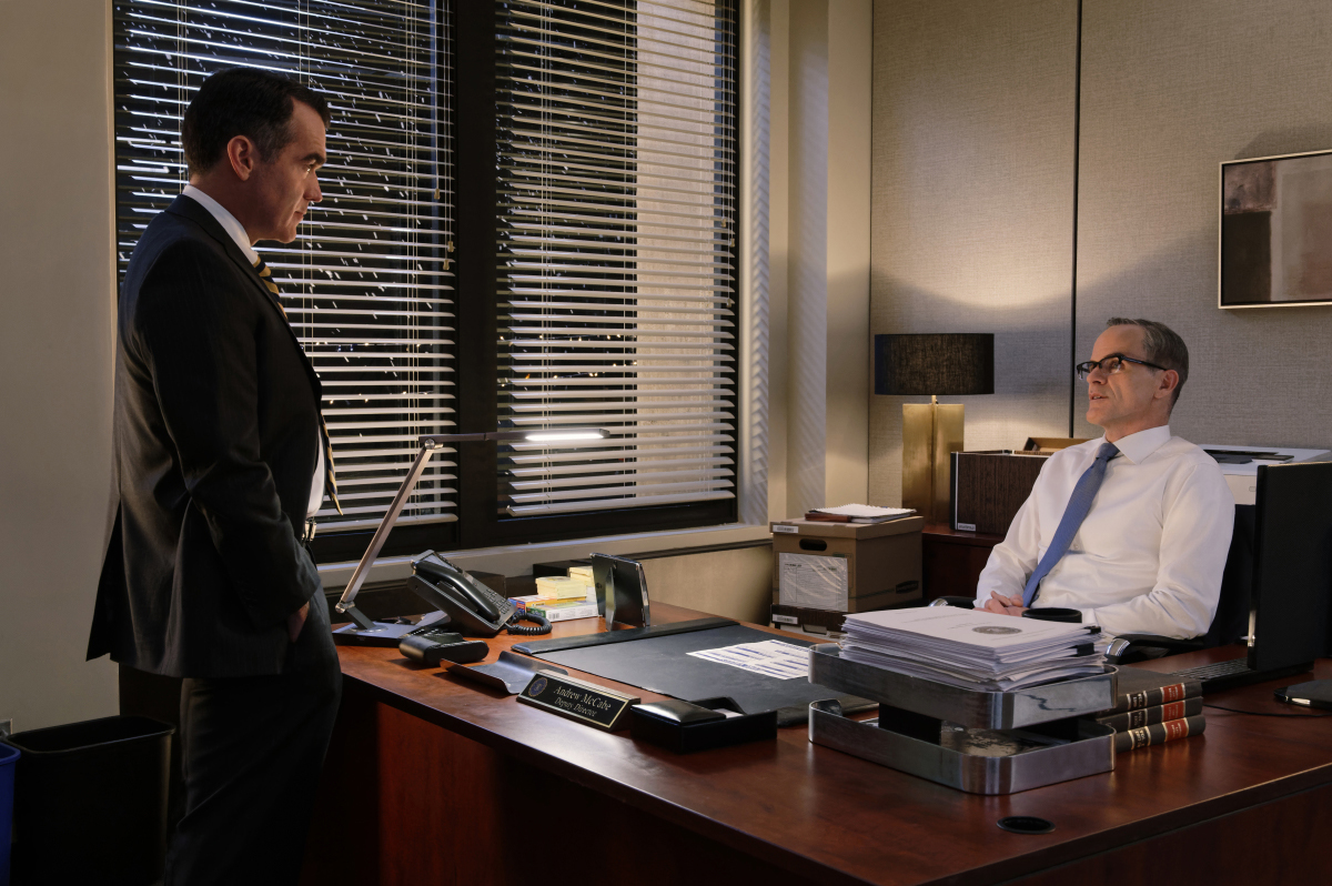 Brian D’Arcy James as Mark Giuliano and Michael Kelly as Andrew McCabe in THE COMEY RULE | ©2020 CBS Television Studios/SHOWTIME/Ben Mark Holzberg
