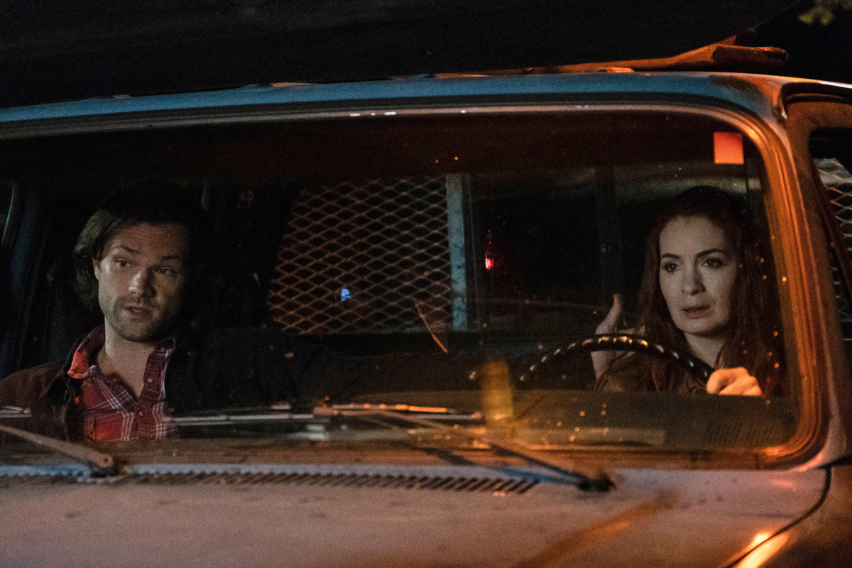 Jared Padalecki as Sam and Felicia Day as Charlie in SUPERNATURAL – Season 14 – “Optimism”| © 2018 The CW Network, LLC/Michael Courtney