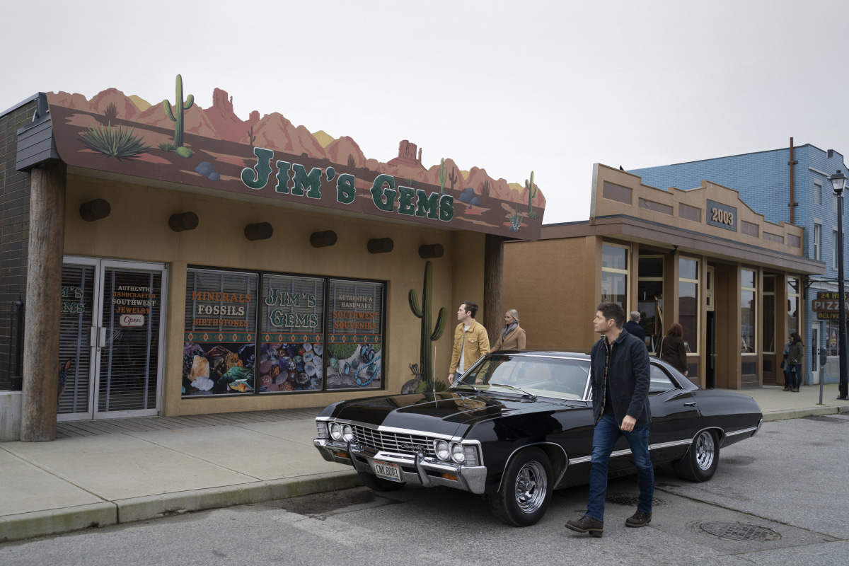 In the morning, Dean and Jack pull up in front of the Jim’s Gems shop. A man opens the door, seems to be expecting Jack. The woman with him is excited to meet Jack.