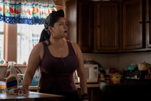 These people include Eddy Martinez, played by native Californian Ser Anzoategui, who is also a playwright. Anzoategui was also a regular on EAST LOS HIGH. Eddy is the widow of Lyn and Emma’s mother Vidalia. She is currently reeling from a series of blows, both literal and physical. After Vidalia’s death, Eddy got jumped and beaten so badly that she was hospitalized, she lost her say in the running of Vida’s bar (inherited by Lyn and Emma), and she’s just found out that Vidalia lied about the death of her husband (played in Season 3 by Jesse Borrego), who is alive, in Los Angeles, and never legally divorced.