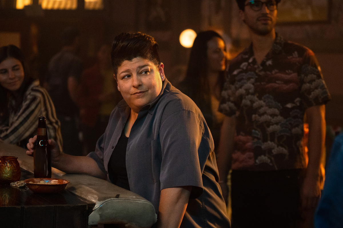 Chelsea Rendon, also Californian, whose other credits include SHAMELESS, THE FOSTERS, HIGH & MIGHTY, and the award-winning feature NO TURNING BACK, plays Marisol “Mari” Sanchez. Mari is a young community activist who is currently caught in the middle of an increasingly tense confrontation between her friends, who think the Hernandez sisters are “gentefying” (appealing too much to the Latinx moneyed classes) the traditionally working-class neighborhood by upscaling the bar, and the sisters themselves, who employed Mari to help Eddy during her recovery. Mari got thrown out of her father’s house when he saw Internet footage (that Mari didn’t know was being recorded) of Mari with her then-boyfriend. Now Mari is sleeping in her brother’s office and working two jobs while seeking a new home.