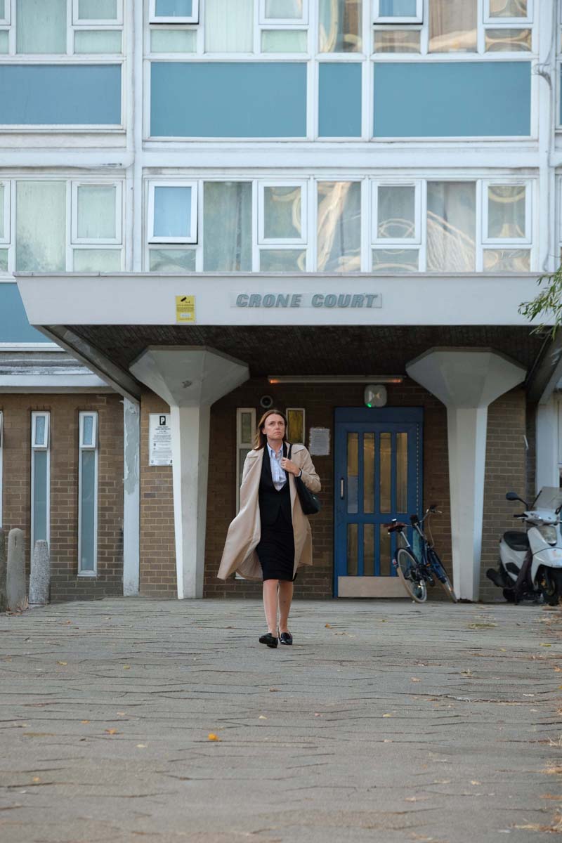 MARSHALL: It’s a bit like shooting a period drama. In the police station, you can see that all the computers are from ten years ago. So, we had a brilliant production designer, Christina Moore. We worked really carefully with her. It feels incredibly real, I think. We didn’t want it to be too overt, but all the details are correct.