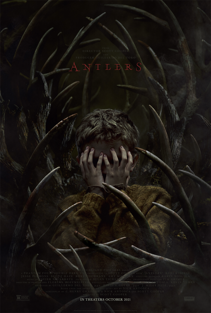 The other actors are all good, and young Thomas is exceptional, haunting and haunted. Writers Henry Chaisson & Nick Antosca and director Cooper, adapting the ANTLERS screenplay from Antosca’s short story “The Quiet Boy,” bring a sense of quiet fatalism to the film.