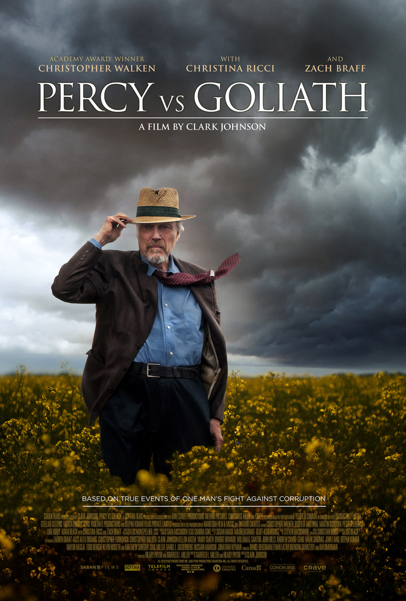 The real Percy Schmeiser seems to have been a fairly different sort of person than he’s depicted here, as played by Christopher Walken. Looking up basic facts about him online suggests that he wasn’t the shy, taciturn fellow of PERCY VS GOLIATH.