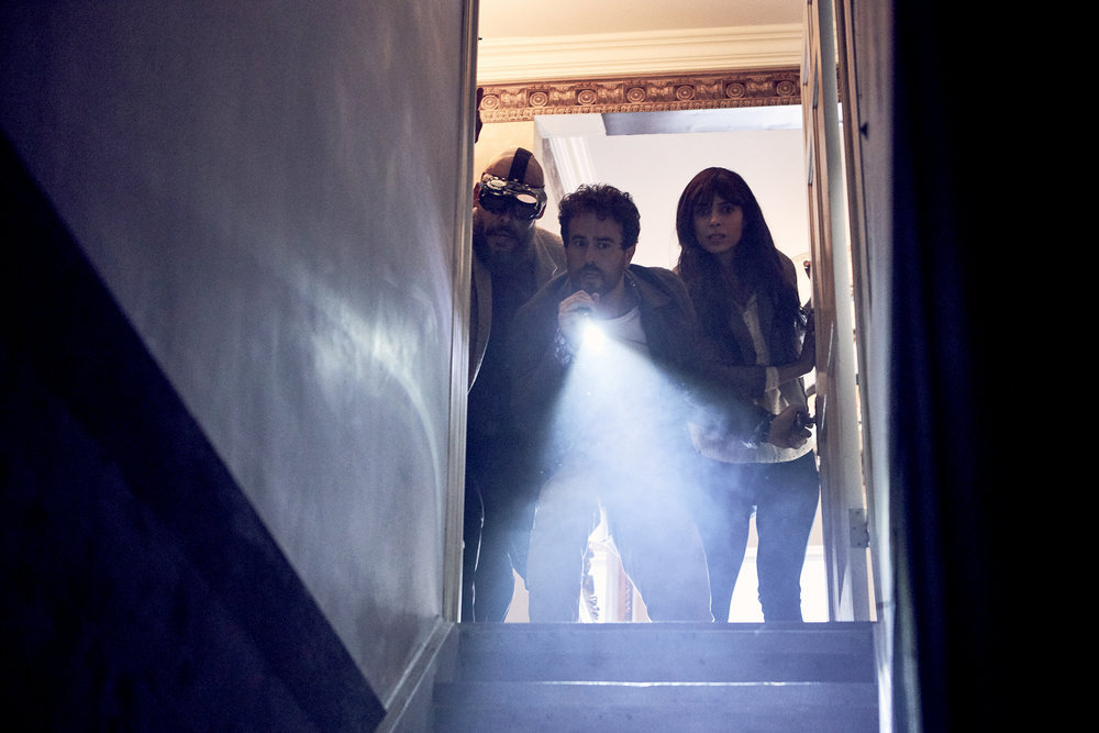 Maurice Dean Wint as August Ripley, Adam Korson as Father Phil Orley, Tennille Read as Megan Donovan in SURREALESTATE – Season 1 | ©2021 Syfy/Duncan De Young/Blue Ice Pictures