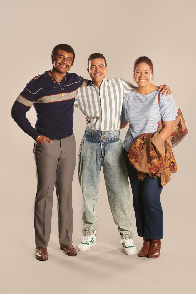 Joseph Lee Anderson as Rocky Johnson, Bradley Constant as Dwayne 15yrs, Stacey Leilua as Ata Johnson in YOUNG ROCK – Season 1 | ©2021 NBC/Mark Taylor