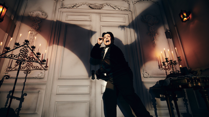Guillermo, being the character most involved with the house’s upkeep, is of course horrified. Guillén, however, is impressed by the work of the WHAT WE DO IN THE SHASOWS art department. “They just did an amazing job. It’s like the detail with the branches. They can see through the floors this time. So, you can actually see through the second floor from the fancy room, which is really cool, because I’ve never seen that before on our set. Aesthetically, it’s really wonderfully done.”