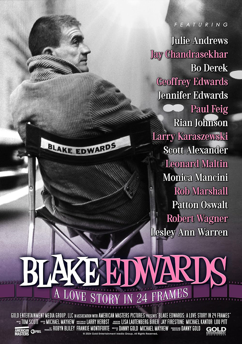 Danny Gold, whose previous documentaries include KILLING ME SOFTLY WITH HIS SONGS (about composer Charles Fox) and IF YOU’RE NOT IN THE OBIT, EAT BREAKFAST (about Carl Reiner and other nonagenarians), directed BLAKE EDWARDS: A LOVE STORY IN 24 FRAMES (the subtitle is a reference to the frame rate of 35-millimeter film).