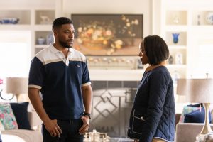 Jocko Sims as Tucker, Aja Naomi King as Catherine in GROSSE POINT GARDEN SOCIETY – Season 1 – “The Frost” | ©2025 NBC/Mark Hill