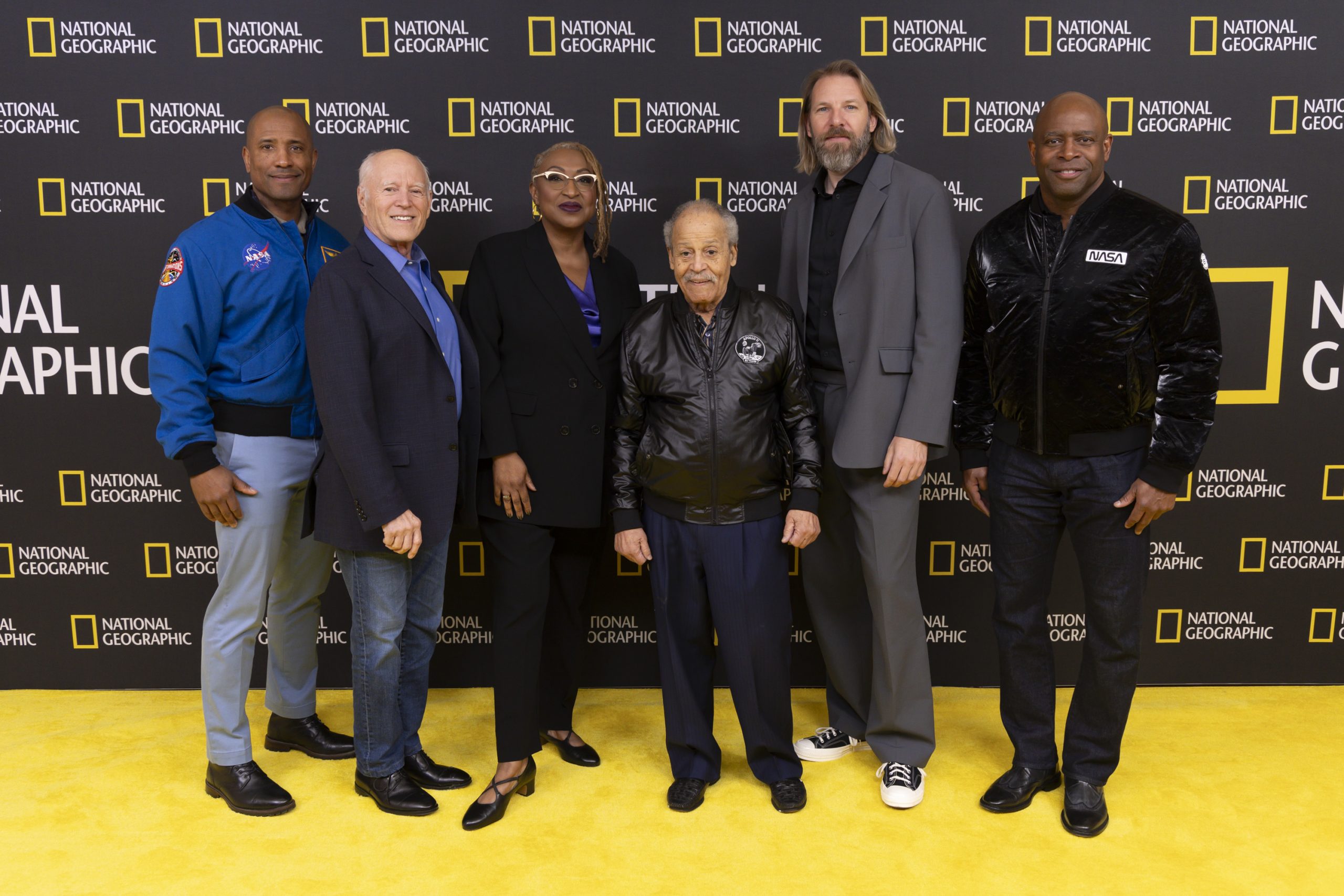 Victor Glover, Frank Marshall, Lisa Cortés, Ed Dwight, Diego Hurtado de Mendoza, and Leland Melvin from the THE SPACE RACE panel at the National Geographic presentation during the 2024 TCA Winter Press Tour at the Langham Huntington on February 8, 2024 in Pasadena, California | ©2024 National Geographic Picture Group